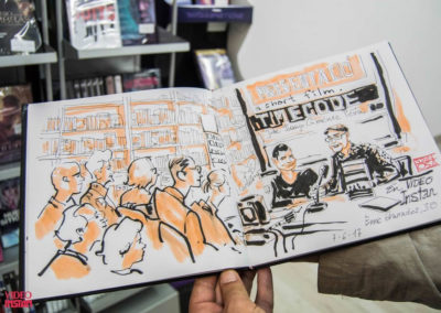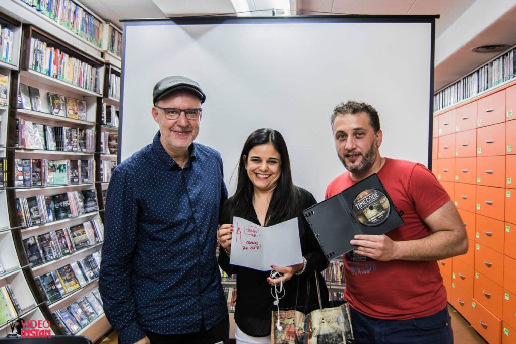 El 7/6 presentamos en nuestra tienda el dvd de la colección de cortos de Juanjo Giménez, entre los que destaca Timecode, ganador de la Palma de Oro en Cannes y nominado al Óscar. Para nosotros fue un honor recibir a Juanjo y él estuvo encantador, simpático y dispuesto a contestar todas nuestras preguntas. Como siempre el público estuvo muy activo y con muchas curiosidades, sobre todo teniendo en cuenta que era la primera vez que teníamos en nuestra tienda a alguien que había ido a los Oscar y eso tiene mucho glamur! En esta línea le preguntaron a Juanjo qué tal por Hollywood y como se vive la alfombra roja, y nos contó que fue muy emocionante pero también todo muy calculado y muy medido y que se lo pasó mucho mejor en la cena de nominados “que aunque tu estés allí por un corto, no te ponen en la mesa de los niños, y compartí charla con actores y directores muy famosos”. Incluso con Ryan Golsling? Le preguntó una asistenta a la presentación, “sí, estuve un rato charlando con él” a lo que yo misma le dije “y es tan guapo como en las pelis?”. La respuesta me la quedo para mí…